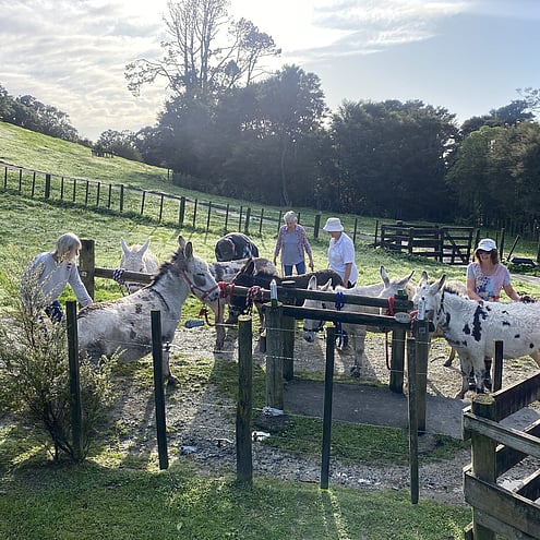 You can bring carrots, silverbeet or apples to feed the donkeys, they are very friendly.